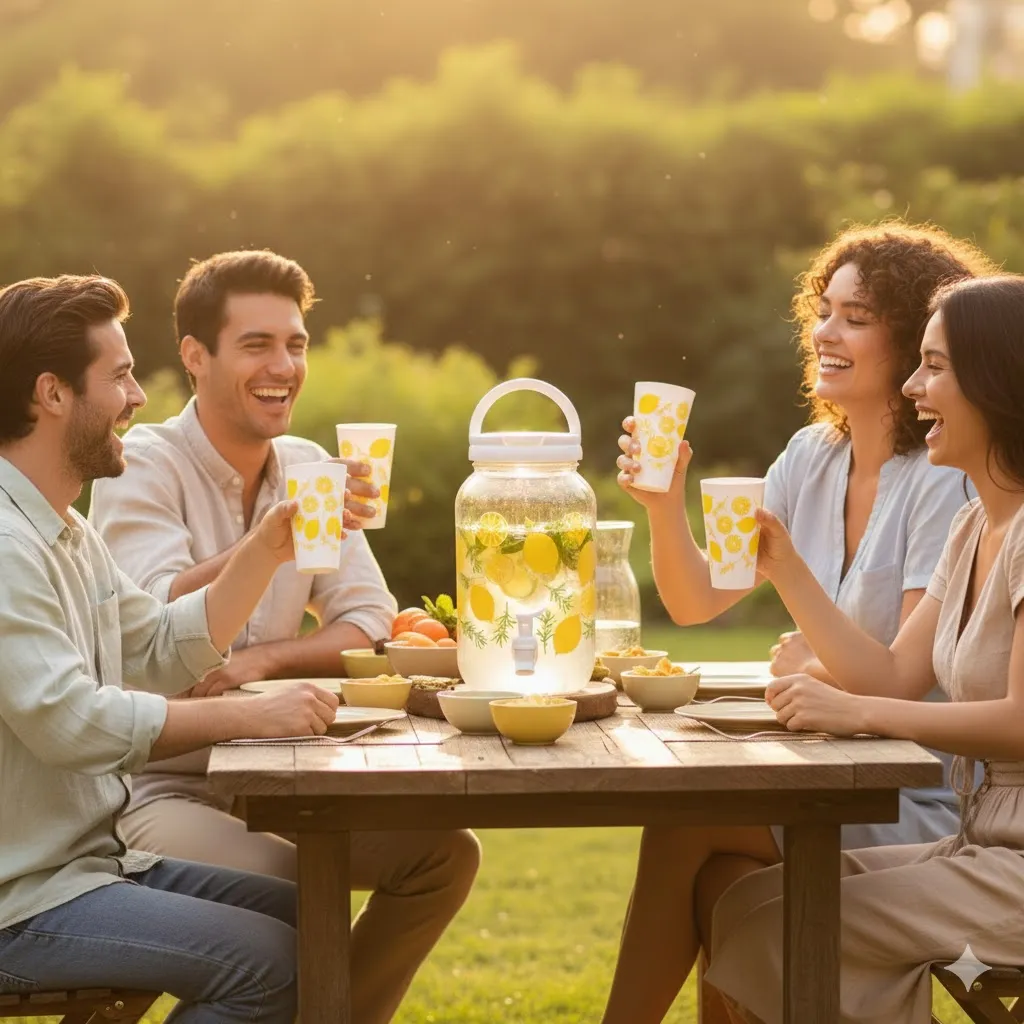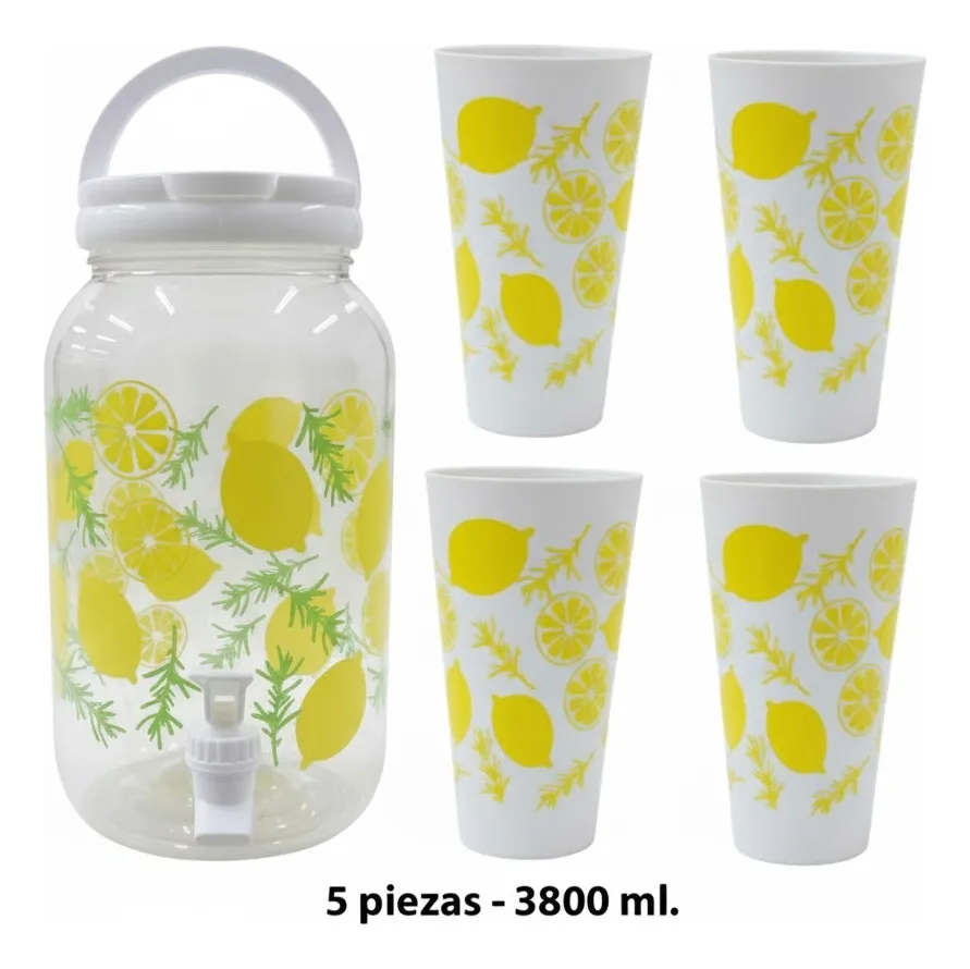 Si buscás ese toque "aesthetic" y fresco para tu cocina o tus tardes de verano, este set es el ganador absoluto. Con un diseño de limones sĂşper vibrante, este dispensador transforma cualquier hidrataciĂłn en un momento de placer visual. Es práctico, liviano y tiene toda la onda que necesitás para tus juntadas. Lo que tenĂ©s que saber de Ă©l: Capacidad Extra: 3.8 litros de pura frescura para que nadie se quede con sed. Combo Citric: Incluye 4 vasos con diseño a tono para que tu mesa se vea impecable y coordinada. Material "Kids & Party Friendly": Fabricado en plástico resistente de alta calidad, ideal para usar sin miedo a roturas accidentales. Canilla dosificadora: Servite con una mano de forma rápida y sin desperdiciar ni una gota. Tapa con Asa Reforzada: Llevá todo el set de un lado a otro cĂłmodamente gracias a su manija integrada. Diseño 5 Piezas: Un kit completo pensado para la funcionalidad y el diseño en tu hogar. ÂżPor quĂ© lo vas a amar? Este set es mucho más que un simple recipiente; es el pretexto perfecto para armar esas aguas saborizadas naturales que ves en las redes. Al ser de un material liviano y resistente, es el compañero ideal para llevar al patio, a la terraza o incluso de picnic, asegurándote de que todos tengan su bebida a mano de la forma más higiĂ©nica posible gracias a su tapa hermĂ©tica. Lo mejor es el diseño: los limones aportan una energĂa limpia y renovada a tu ambiente, haciendo que el dispensador se luzca incluso cuando no lo estás usando. Es sĂşper fácil de lavar y guardar, ocupando el espacio justo en tu alacena. Si querĂ©s practicidad sin